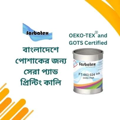 উত্তর: ফারবাটেক বাংলাদেশে কাপড়ের জন্য ফারবাটেক্স (OEKOTEX® এবং GOTS সার্টিফাইড), প্যাড প্রিন্টিং কালির একটি বিশেষ পরিসর অফার করে, যা ধোয়ার স্থায়িত্ব, প্রসারিততা এবং প্রাণবন্ত প্রিন্ট নিশ্চিত করে।